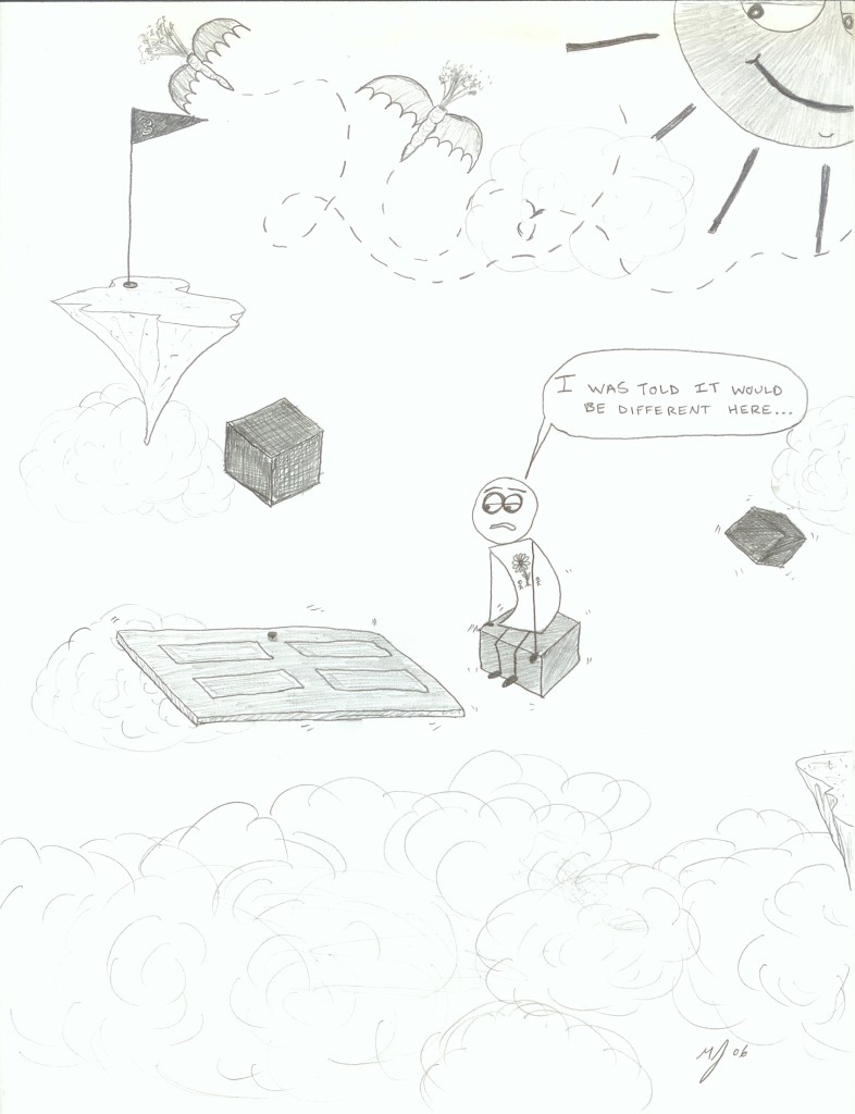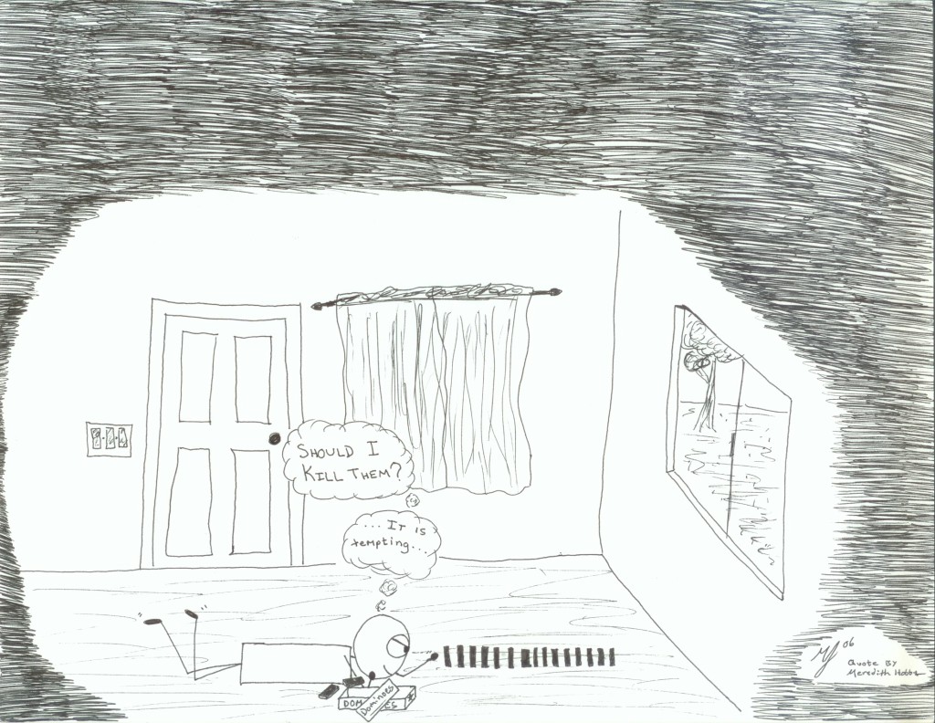 I drew this while sitting in an ethics class. I only had lined paper at the time, a fact I regret to this day, however this has remained one of my favorite drawings. One day I’ll have to photoshop out[…]↓ Read the rest of this entry…